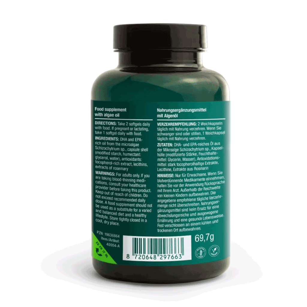 - Duurzame algenbron en vrij van dierlijke ingrediënten