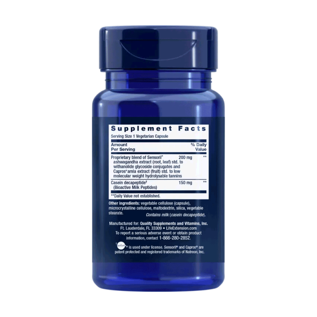 In overeenstemming met de Europese regelgeving betreffende voedingssupplementen kunnen wij geen specifieke gezondheidsclaims maken over de werking van caseïnepeptiden of ashwagandha. Life Extension mag geen uitspraken doen over nutriënten zonder goedgekeurde gezondheidsclaim door de Europese Commissie. Deze claims worden goedgekeurd op basis van wetenschappelijk bewijs, geëvalueerd door de Europese Autoriteit voor voedselveiligheid (EFSA). Gezondheidsclaims zijn uitspraken over de relatie tussen voeding en gezondheid.