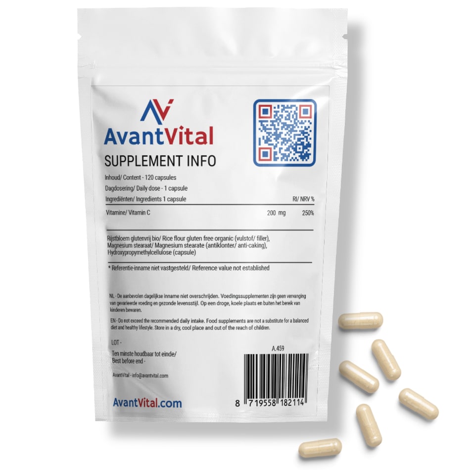 Vitamine C van AvantVital biedt een krachtige dosis van 200 mg per capsule, wat bijdraagt aan de dagelijkse behoefte van het lichaam. Bovendien bieden wij dit supplement aan in een praktische, hersluitbare verpakking met 120 capsules.